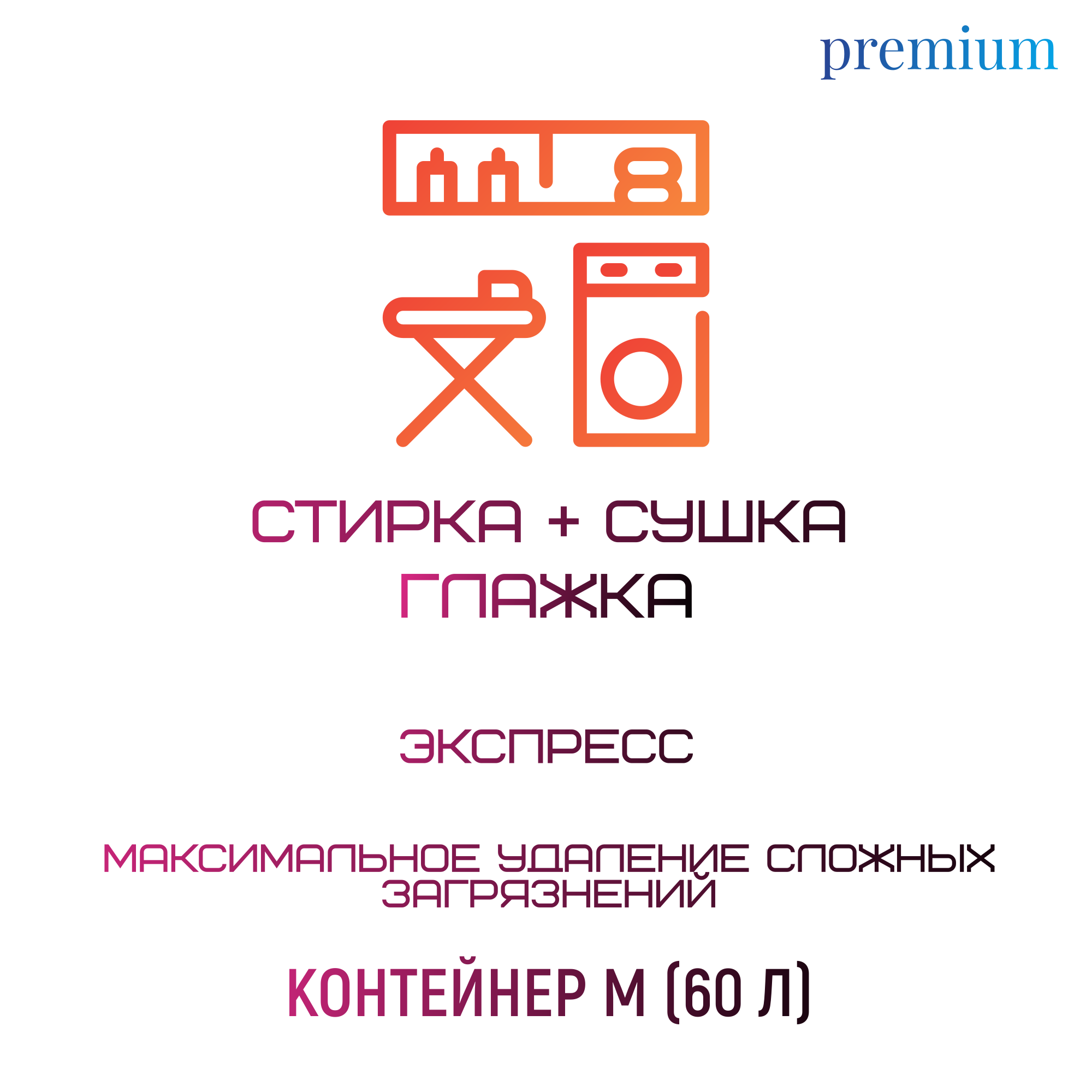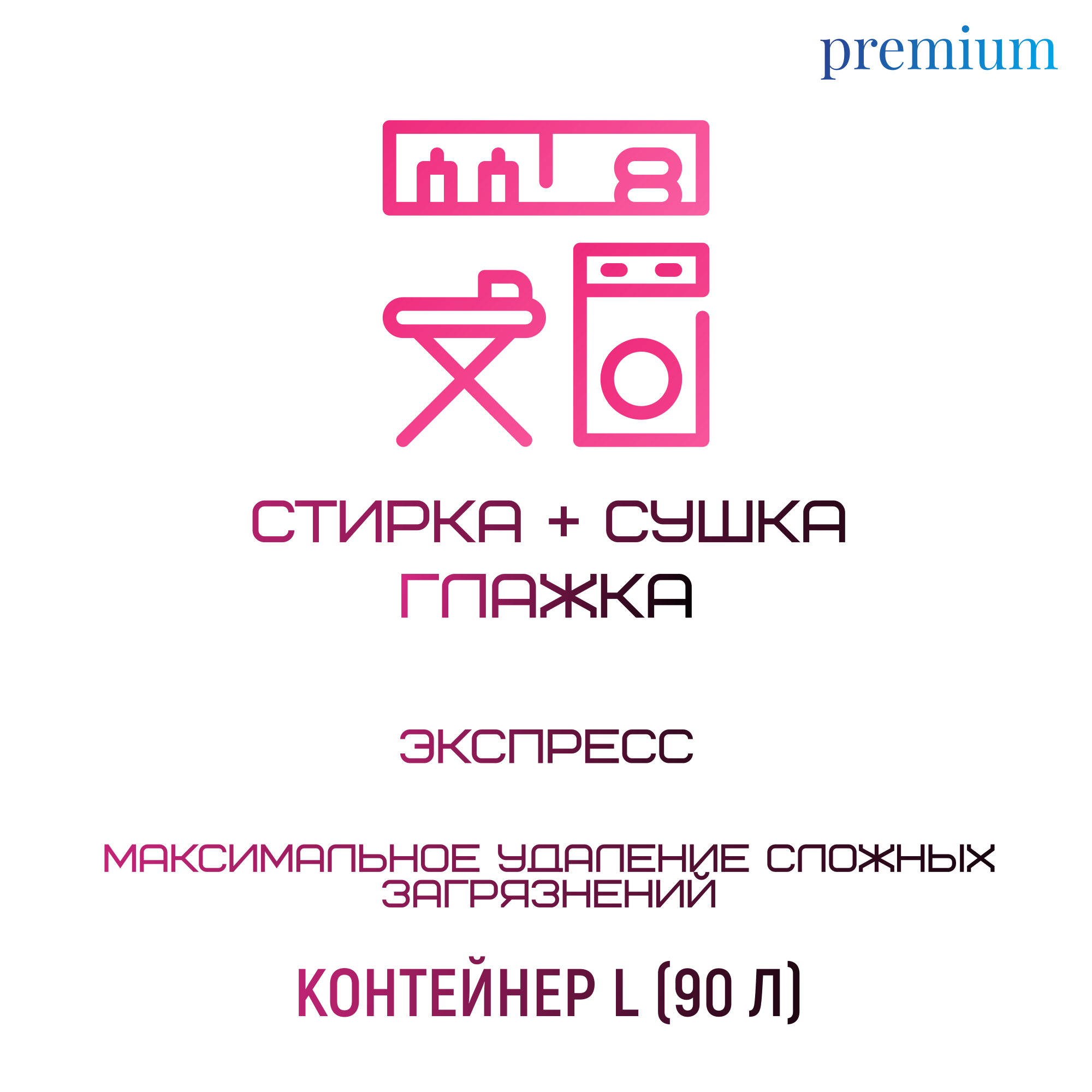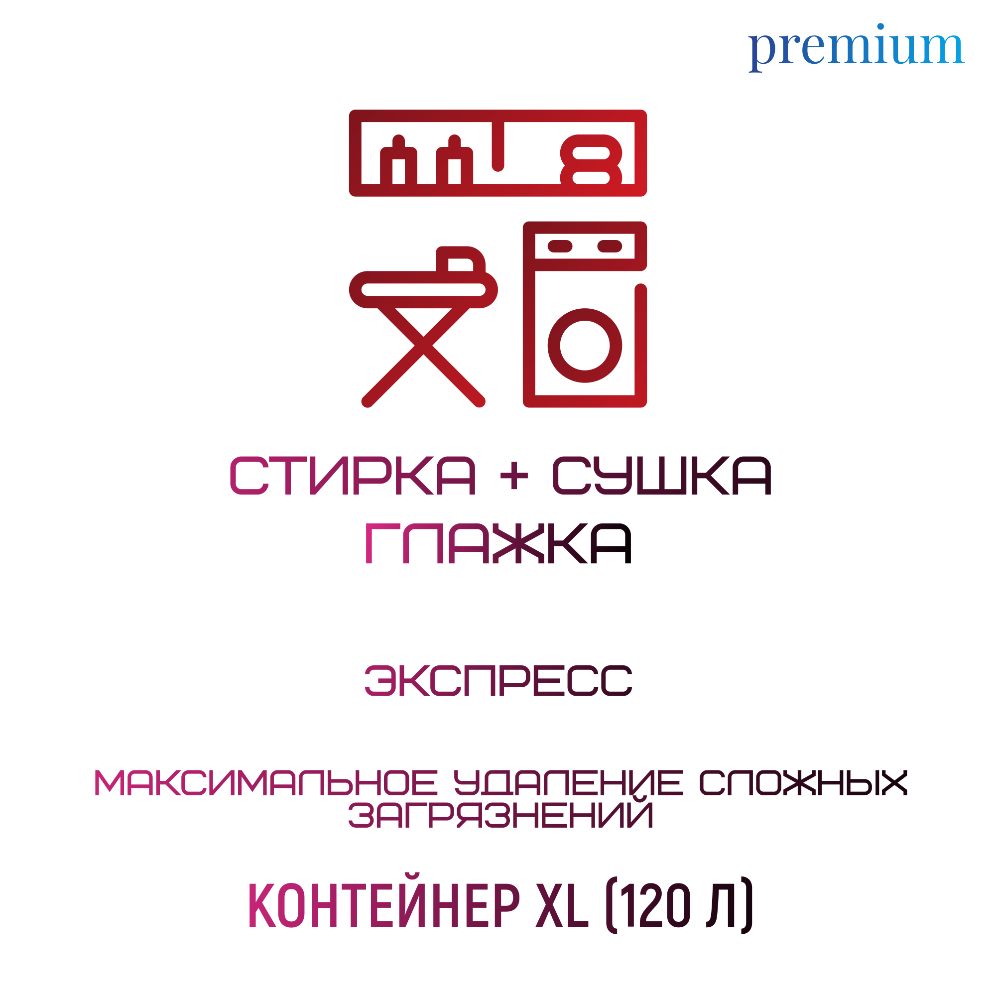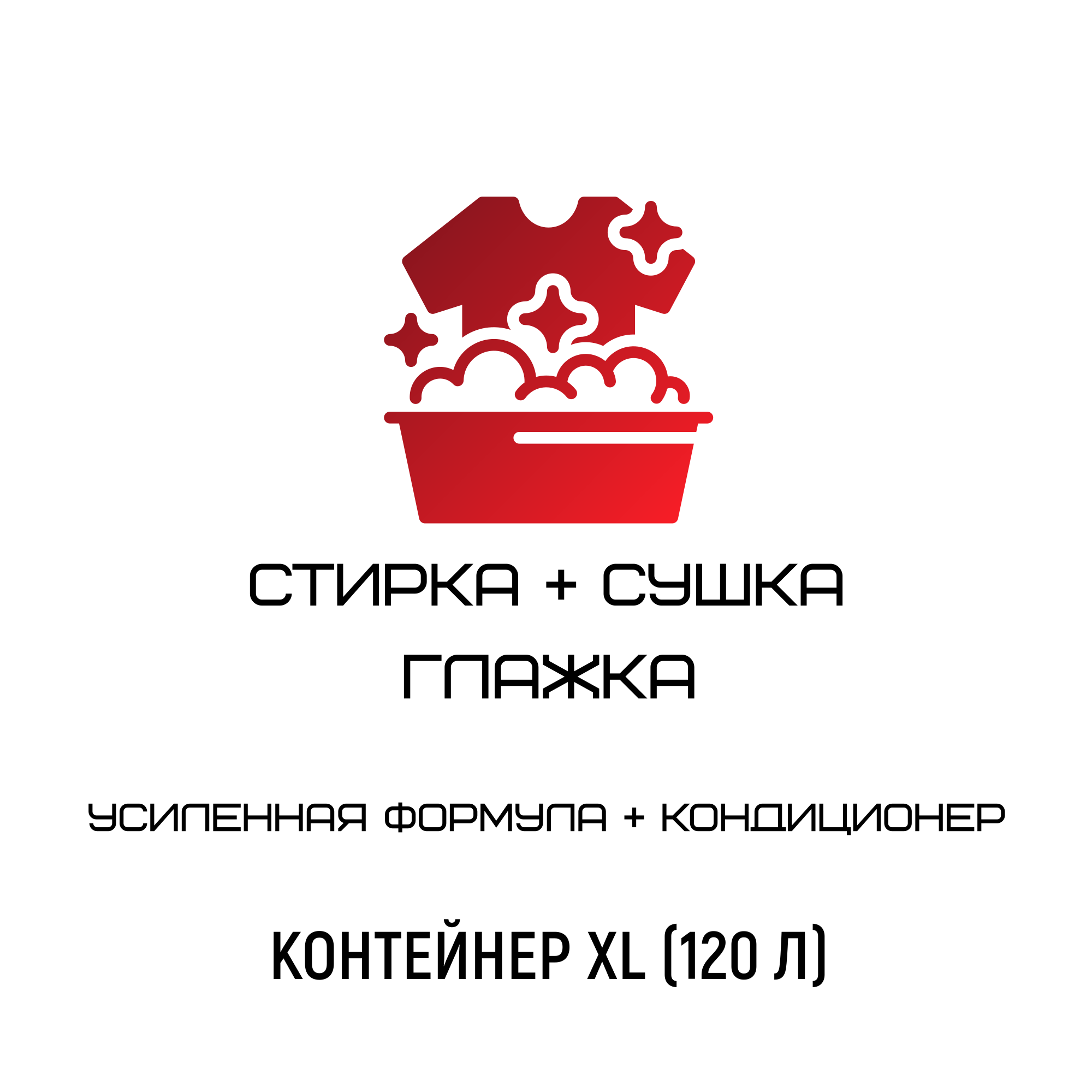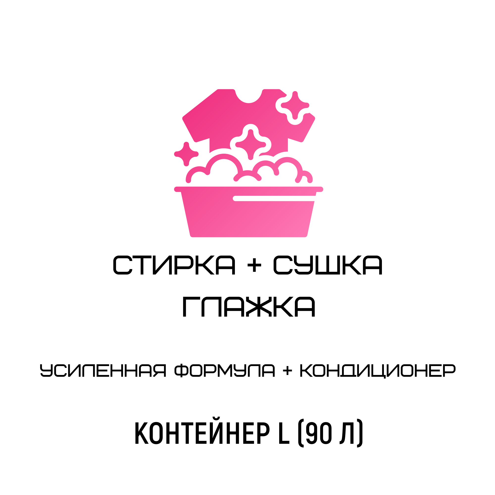 В услугу входит стирка премиальным стиральным гелем с усиленной формулой, премиальный кондиционер и дезинфицирующее средство.